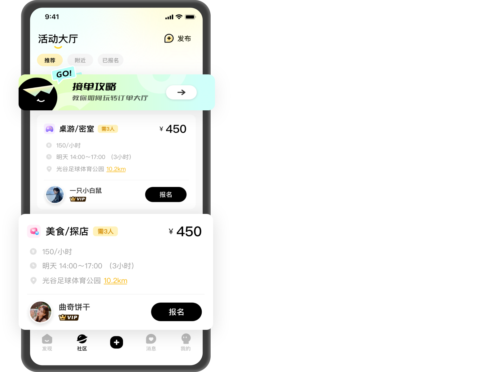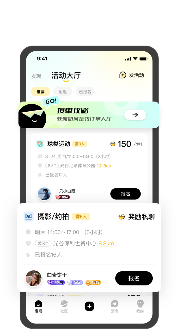 您也可以组局一起去唱k、酒吧、剧本杀、桌游、密室、看电影、吃美食等,快乐生活永不停!